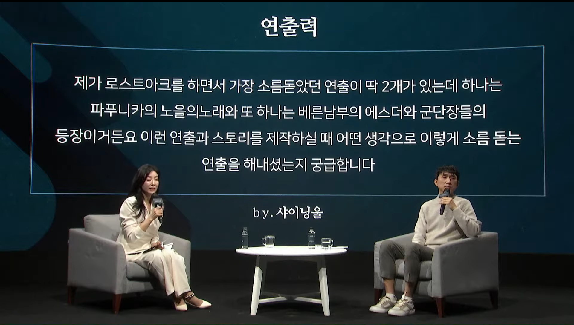 무엇보다 금강선 전 총괄 디렉터님도 말씀을 하셨지만, 분위기에 걸맞은 음향 팀은 정말로 아무리 칭찬해도 부족하지 않습니다.