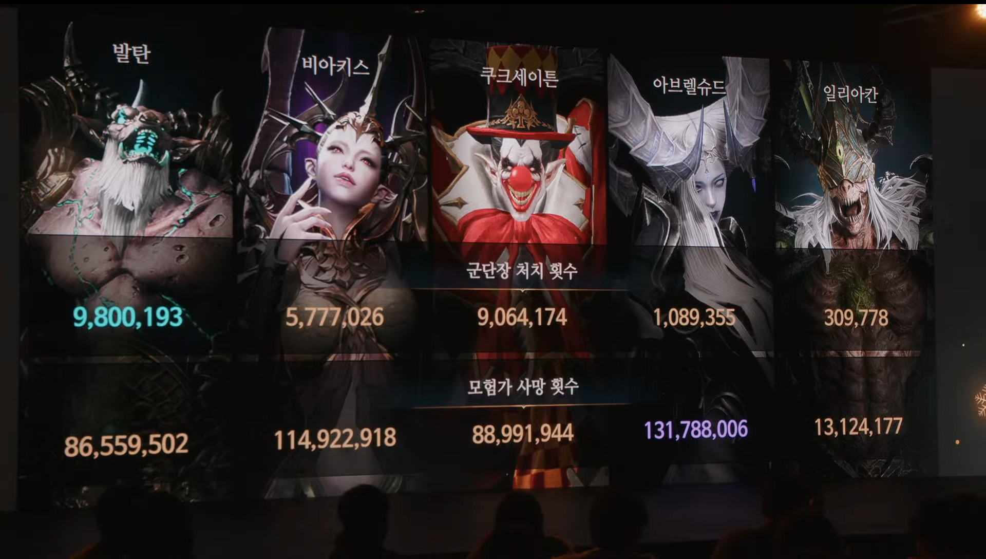 지금까지 군단장들이 처치된 횟수와 도전한 모험가들이 사망한 횟수에 대해서 이야기를 해주셨습니다.